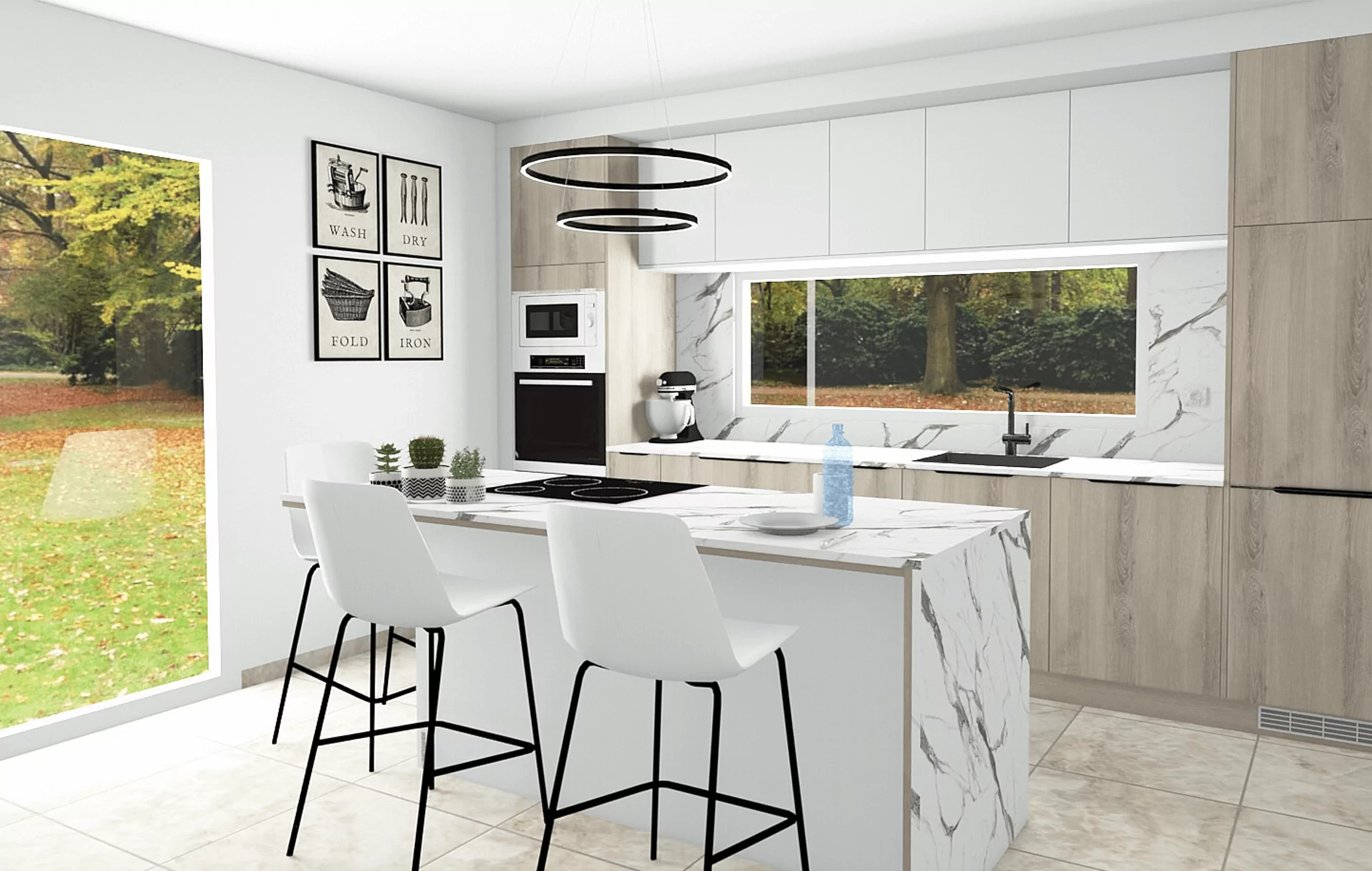 Les nuances de bois et de blanc attirent l’attention de vos invités sur les finitions marbrées. Particulièrement élégante, la céramique effet marbre s’offre une seconde jeunesse dans nos intérieurs. Osez avec sensibilité,
