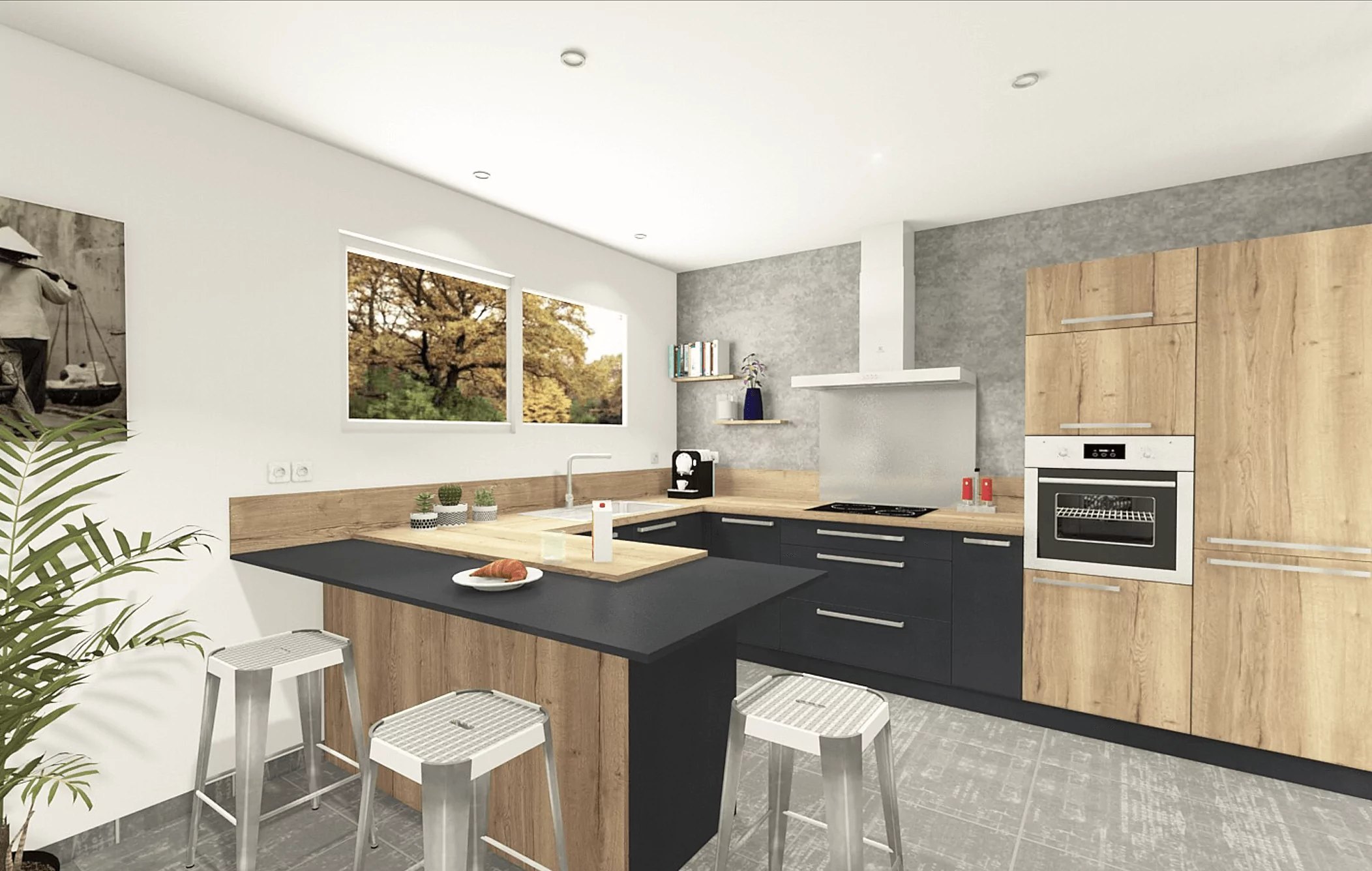 La découpe du plan de travail ajoute un brin de fantaisie à cet espace de quiétude pour profiter de chaque moment entre amis ou en famille.