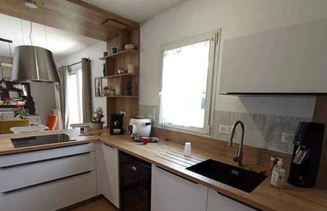 Cette extension vers le haut n’est pas uniquement esthétique, elle est également pensée pour maximiser le rangement sans encombrer l’espace au sol. Cela permet d’ajouter des étagères décoratives où l’on peut disposer des objets personnels, des plantes ou des accessoires de cuisine, tout en restant à portée de main. De cette manière, la cuisine devient un espace non seulement fonctionnel, mais aussi personnalisé et vivant.