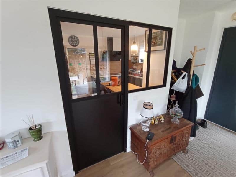 Outre son esthétique, cette verrière dispose d’une porte intégrée qui permet de fermer l’accès à la cuisine lorsque nécessaire, tout en maintenant la transparence visuelle. Elle permet également de limiter les odeurs provenant de la cuisine sans couper complètement la pièce.