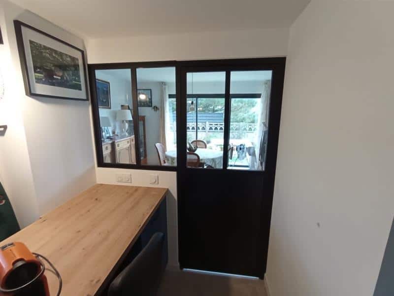 La verrière crée une véritable séparation entre les deux pièces sans pour autant isoler les personnes qui se trouvent dans chaque espace. Cela permet de maintenir un lien visuel et une communication fluide entre les deux zones, pratique lors des repas ou des moments conviviaux. On peut cuisiner tout en restant en contact avec les invités ou les membres de la famille présents dans la salle à manger.