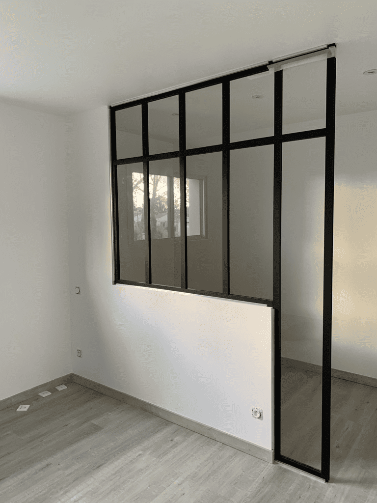 Tout en délimitant subtilement les espaces, cette verrière crée une séparation visuelle efficace, mais sans enfermer ni couper les différentes zones. Que ce soit pour séparer une chambre d’un bureau ou une pièce à vivre d’un espace de travail, elle combine esthétique et fonctionnalité.