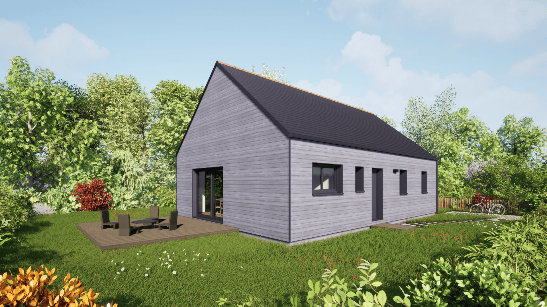 À noter que ce modèle existe également avec une couverture tuile ou avec un toit terrasse.