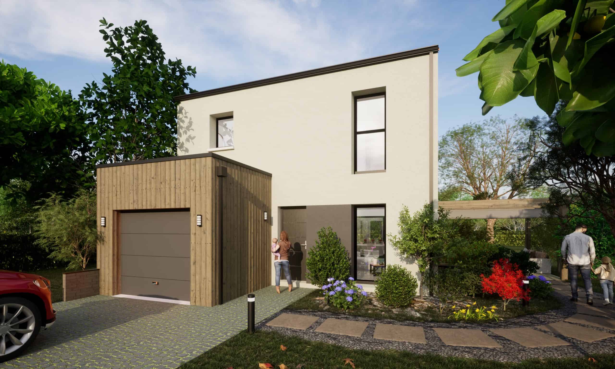 L’inspiration LENA est un modèle à étage avec garage, d’une surface habitable de plus de 98 m². Elle comprend 3 chambres de près de 12 m² environ. La pièce de vie de près de 43 m² se compose d’une cuisine ouverte sur un salon/séjour.