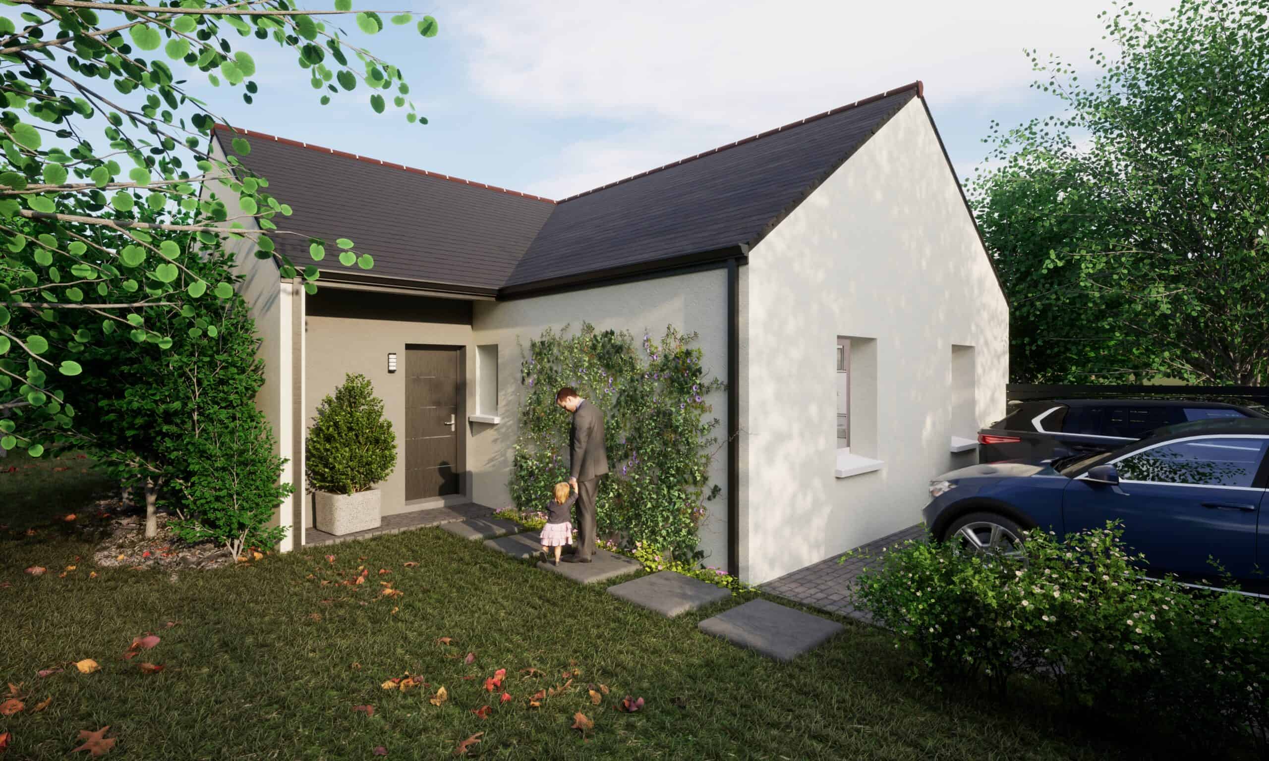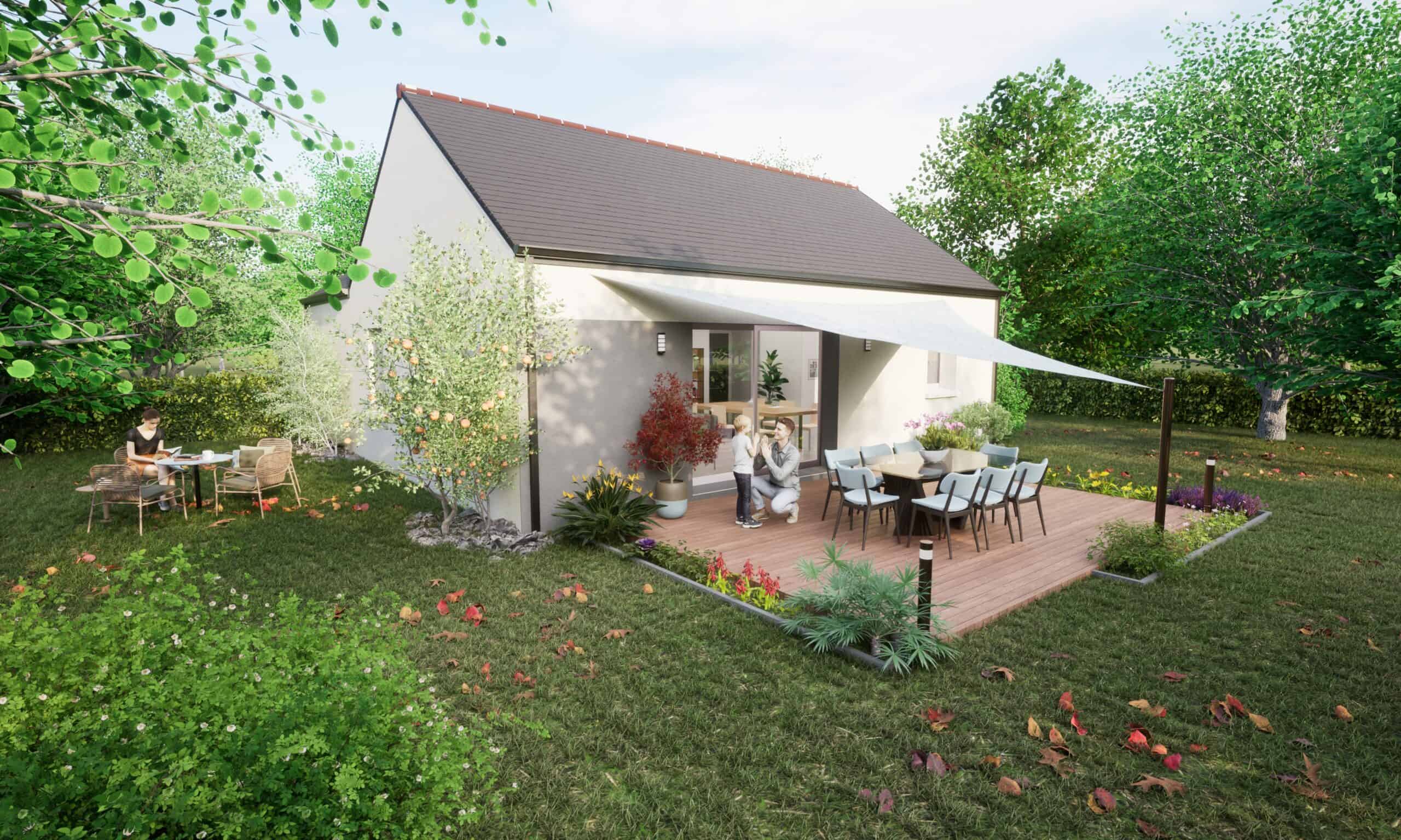 *Prix indicatif pour un projet de construction d’une maison individuelle. Aménagements intérieurs et extérieurs, options non compris. Frais de branchements, raccordements aux réseaux publics et frais d’adaptations non inclus. Frais de notaire, frais divers, garanties et assurances obligatoires non inclus.