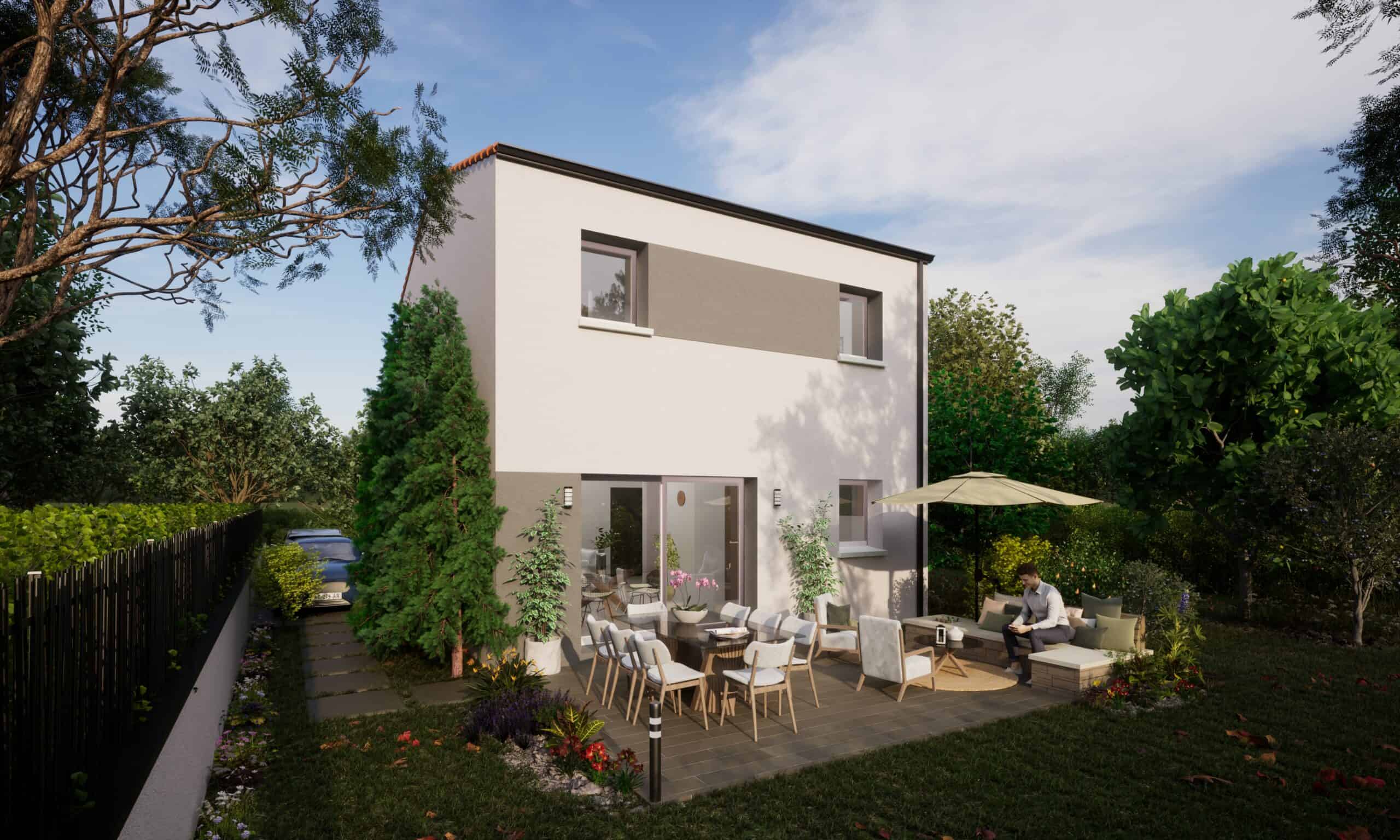 *Prix indicatif pour un projet de construction d’une maison individuelle. Aménagements intérieurs et extérieurs, options non compris. Frais de branchements, raccordements aux réseaux publics et frais d’adaptations non inclus. Frais de notaire, frais divers, garanties et assurances obligatoires non inclus.