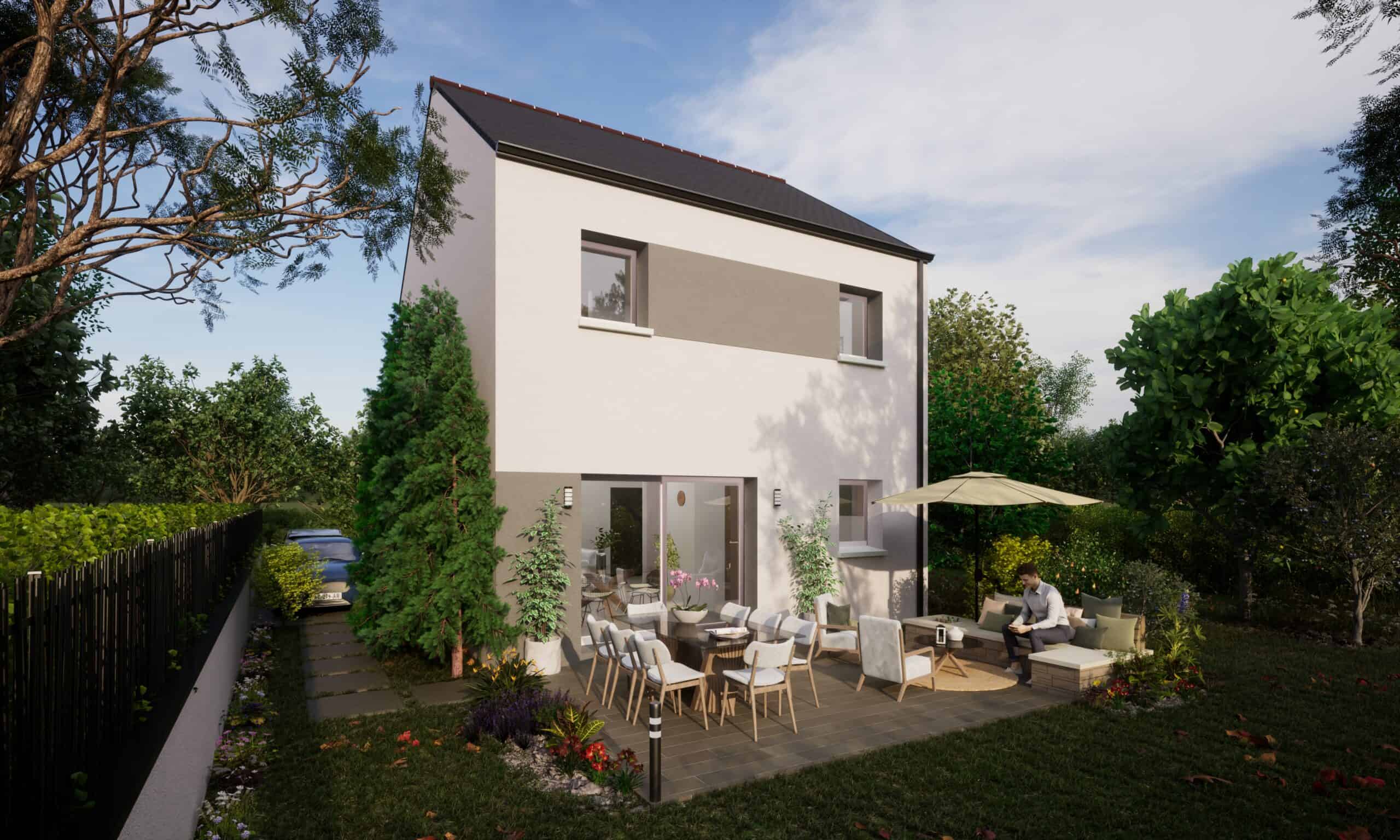 *Prix indicatif pour un projet de construction d’une maison individuelle. Aménagements intérieurs et extérieurs, options non compris. Frais de branchements, raccordements aux réseaux publics et frais d’adaptations non inclus. Frais de notaire, frais divers, garanties et assurances obligatoires non inclus.