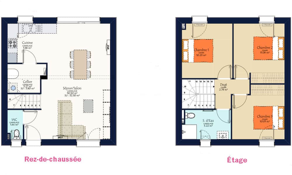 L’inspiration CATALOGUE #5 est un modèle à étage, d’une surface habitable de près de 80 m². Elle comprend 3 chambres de plus de