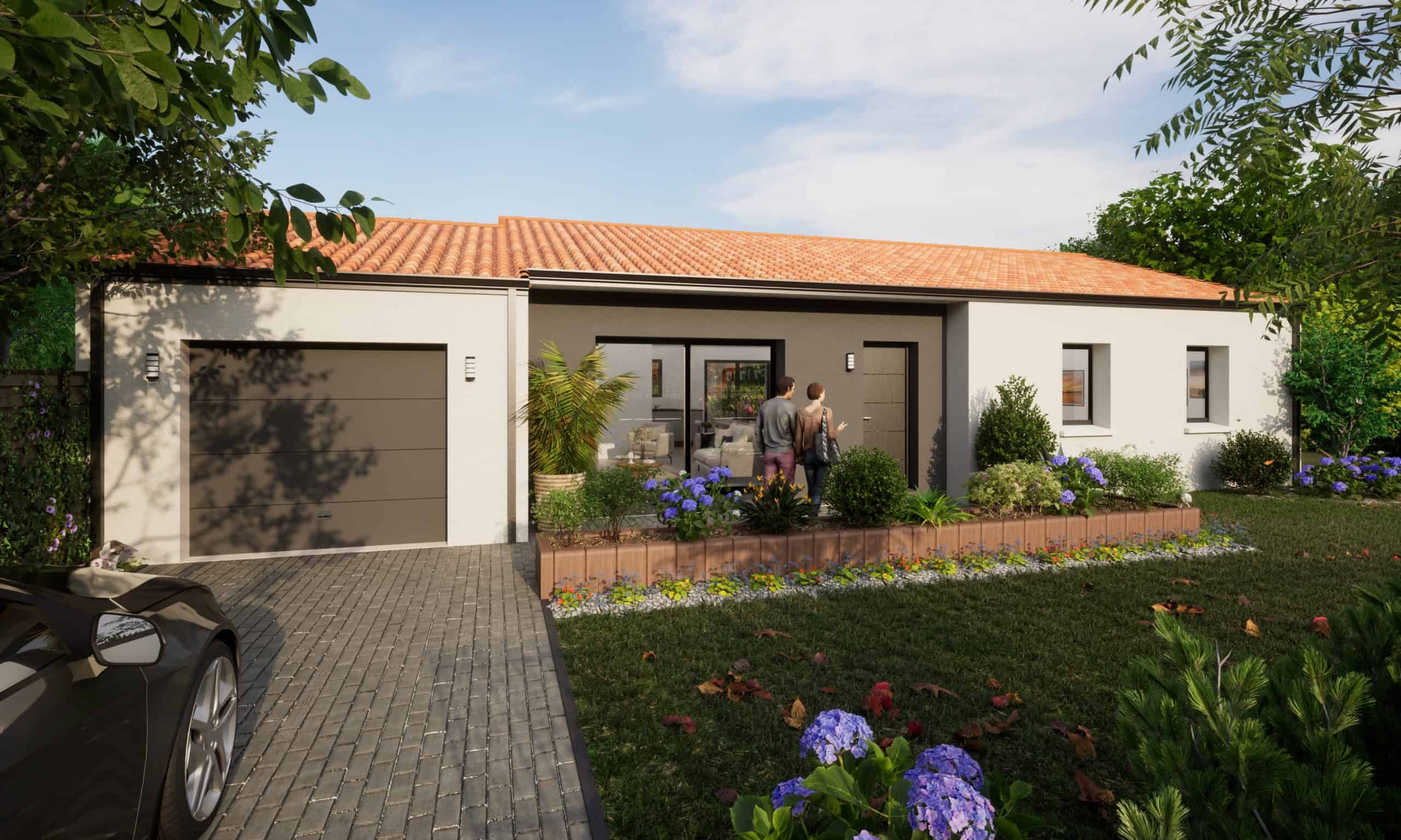 L’inspiration HYDOR est un modèle plainpied avec garage, d’une surface habitable de plus de 94 m². Elle comprend 3 chambres de 10 m² à 12 m² environ. La pièce de vie d’environ 44 m² se compose d’une cuisine ouverte sur un séjour/salon. Le garage de plus de 26 m² communique avec la maison grâce au cellier de plus de 5 m².