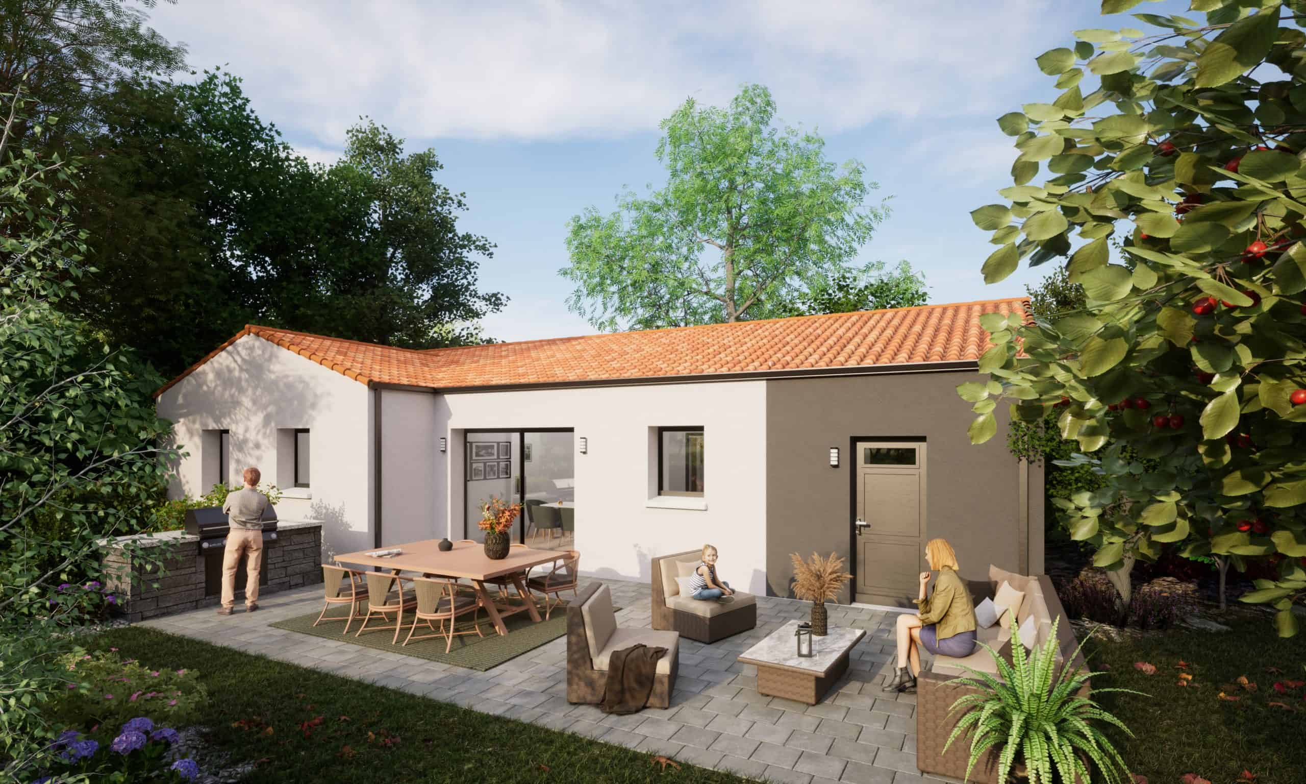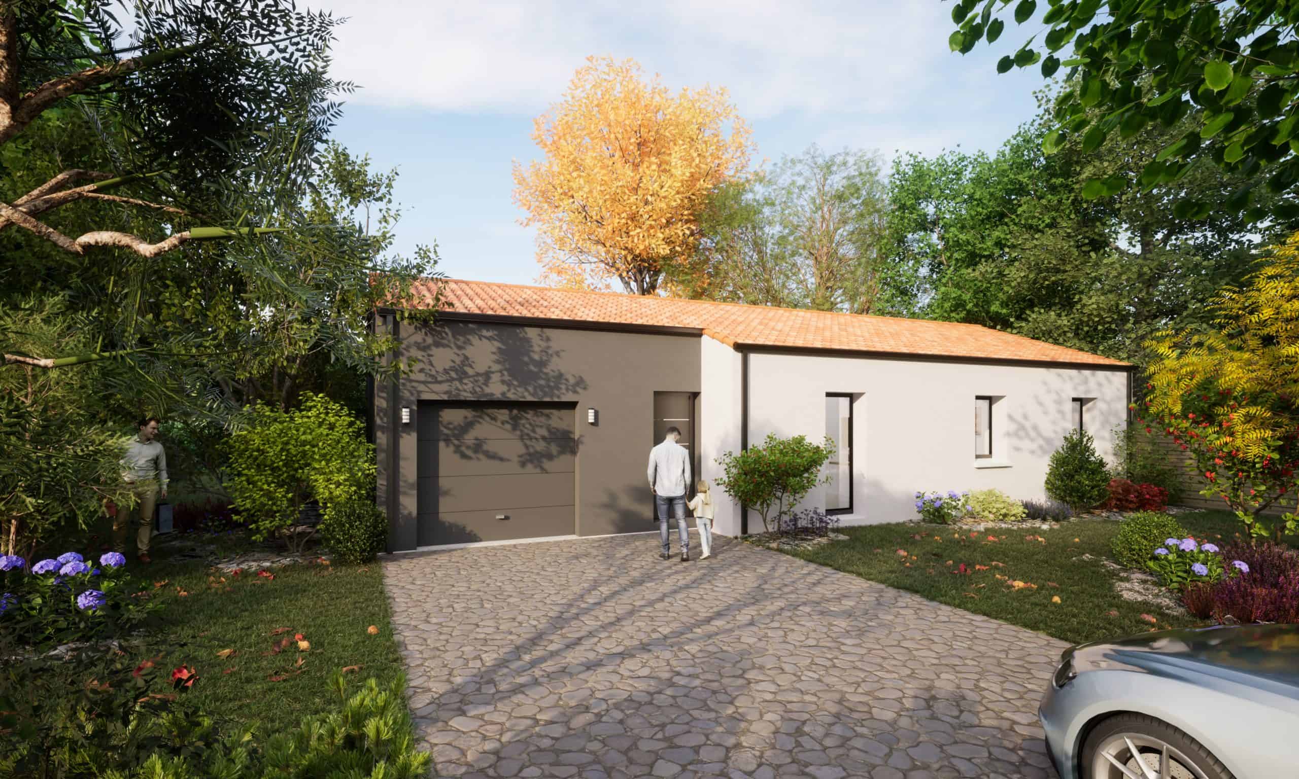 L’inspiration SARAN est un modèle plain-pied avec garage, d’une surface habitable de près de 87 m². Elle comprend 3 chambres de 10 m² à 11 m² environ. La pièce de vie d’environ 35 m² se compose d’une cuisine ouverte sur un salon/séjour. Le garage de plus de 19 m² communique avec la maison grâce au cellier de près de 4 m².