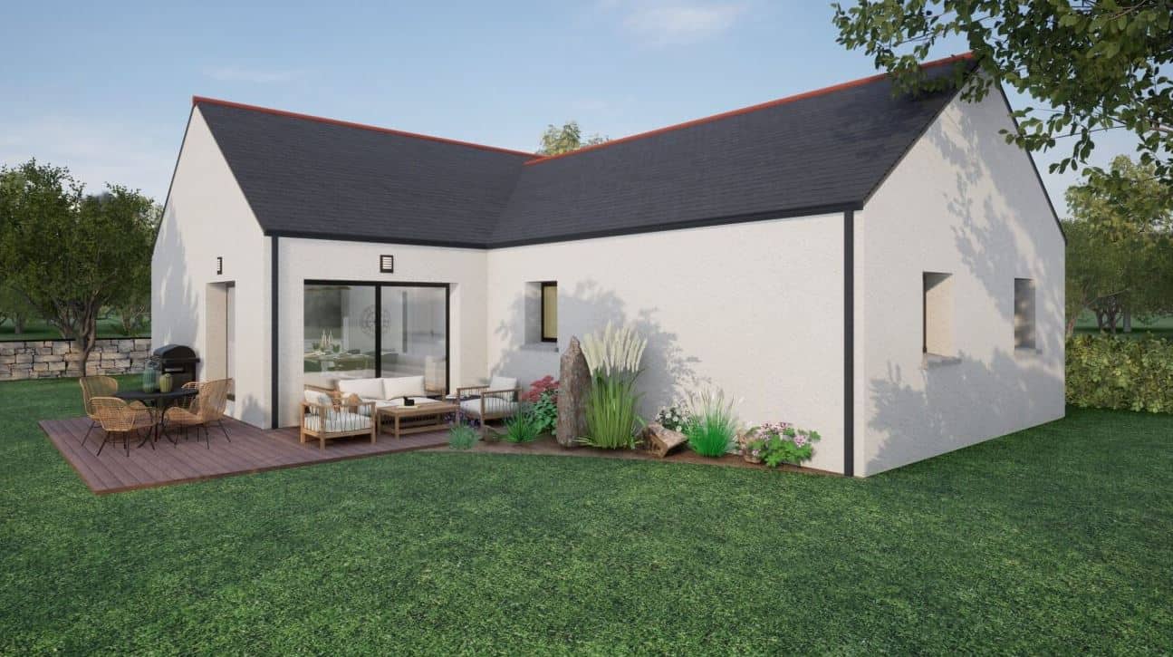 Coût de construction indicatif d’un projet de maison individuelle soumis au contrat protecteur du Code de la construction et de l’habitation (garanties financières et techniques du constructeur incluses). Voir détails en agence. Visuels non-contractuels. Prix à ajuster après visite terrain et selon vos choix définitifs. Hors droits de mutation, taxes locales, frais de raccordement. Terrain sélectionné auprès de partenaires fonciers pour la construction d’une maison neuve par ALLIANCE CONSTRUCTION (non mandatée pour réaliser la vente du terrain), sous réserve de disponibilité.