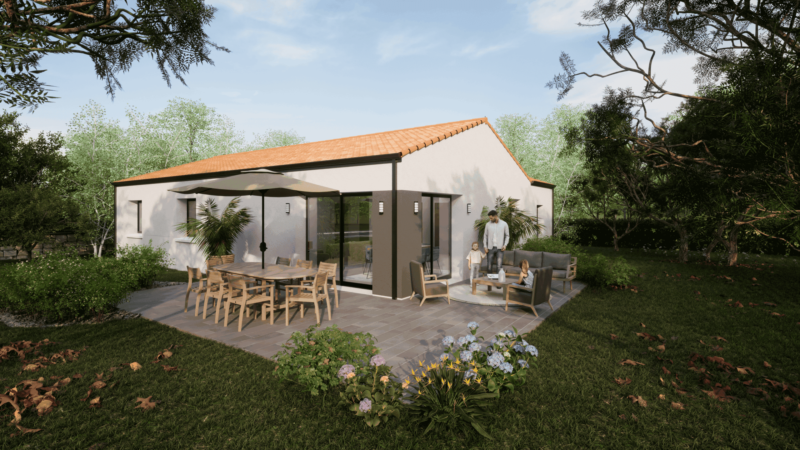 Coût de construction indicatif d’un projet de maison individuelle soumis au contrat protecteur du Code de la construction et de l’habitation (garanties financières et techniques du constructeur incluses). Voir détails en agence. Visuels non-contractuels. Prix à ajuster après visite terrain et selon vos choix définitifs. Hors droits de mutation, taxes locales, frais de raccordement. Terrain sélectionné auprès de partenaires fonciers pour la construction d’une maison neuve par ALLIANCE CONSTRUCTION (non mandatée pour réaliser la vente du terrain), sous réserve de disponibilité.