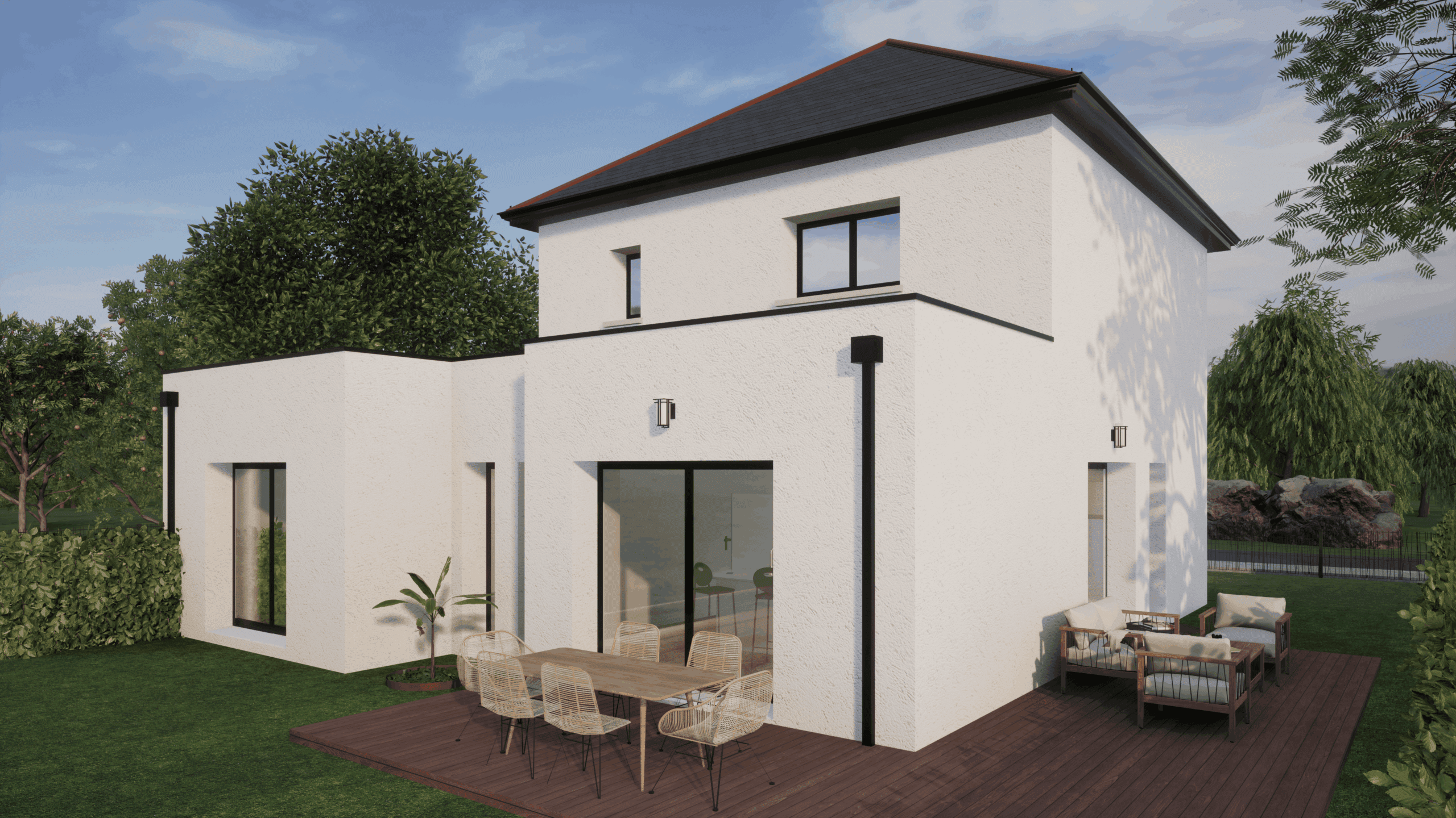 Coût de construction indicatif d’un projet de maison individuelle soumis au contrat protecteur du Code de la construction et de l’habitation (garanties financières et techniques du constructeur incluses). Voir détails en agence. Visuels non-contractuels. Prix à ajuster après visite terrain et selon vos choix définitifs. Hors droits de mutation, taxes locales, frais de raccordement. Terrain sélectionné auprès de partenaires fonciers pour la construction d’une maison neuve par ALLIANCE CONSTRUCTION (non mandatée pour réaliser la vente du terrain), sous réserve de disponibilité.