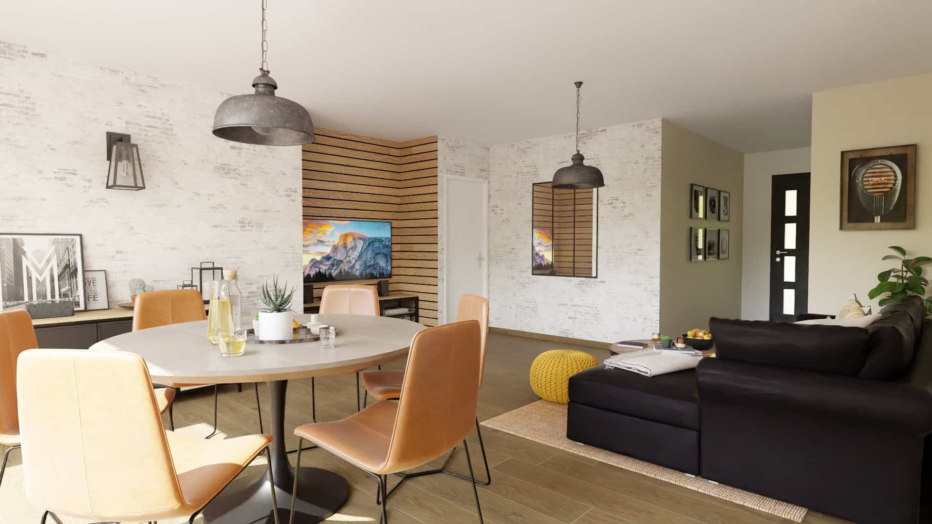 Coût de construction indicatif d’un projet de maison individuelle soumis au contrat protecteur du Code de la construction et de l’habitation (garanties financières et techniques du constructeur incluses). Voir détails en agence. Visuels non-contractuels. Prix à ajuster après visite terrain et selon vos choix définitifs. Hors droits de mutation, taxes locales, frais de raccordement. Terrain sélectionné auprès de partenaires fonciers pour la construction d’une maison neuve par ALLIANCE CONSTRUCTION (non mandatée pour réaliser la vente du terrain), sous réserve de disponibilité.