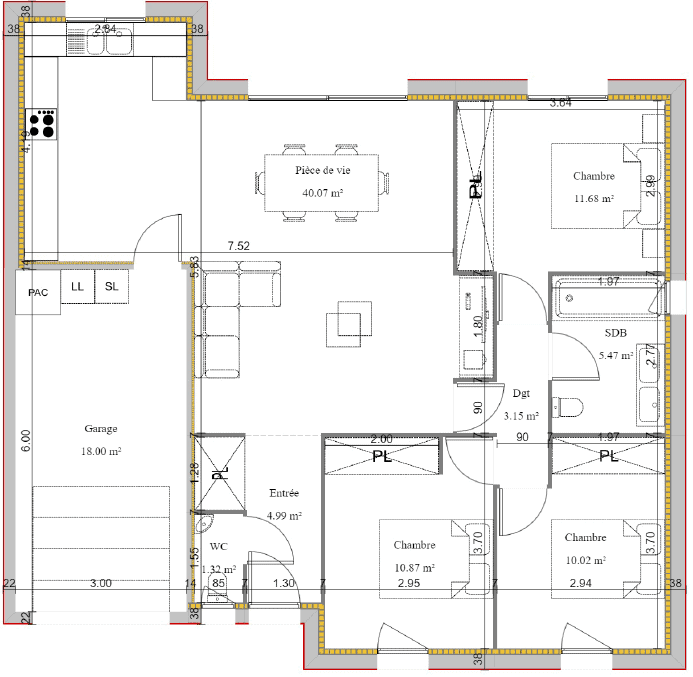 Nous vous proposons cette maison de 87,57 m² + 18 m² de garage.