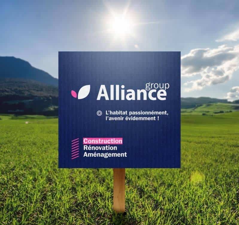 Coût de construction indicatif d’un projet de maison individuelle soumis au contrat protecteur du Code de la construction et de l’habitation (garanties financières et techniques du constructeur incluses). Voir détails en agence. Visuels non-contractuels. Prix à ajuster après visite terrain et selon vos choix définitifs. Hors droits de mutation, taxes locales, frais de raccordement. Terrain sélectionné auprès de partenaires fonciers pour la construction d’une maison neuve par ALLIANCE CONSTRUCTION (non mandatée pour réaliser la vente du terrain), sous réserve de disponibilité.