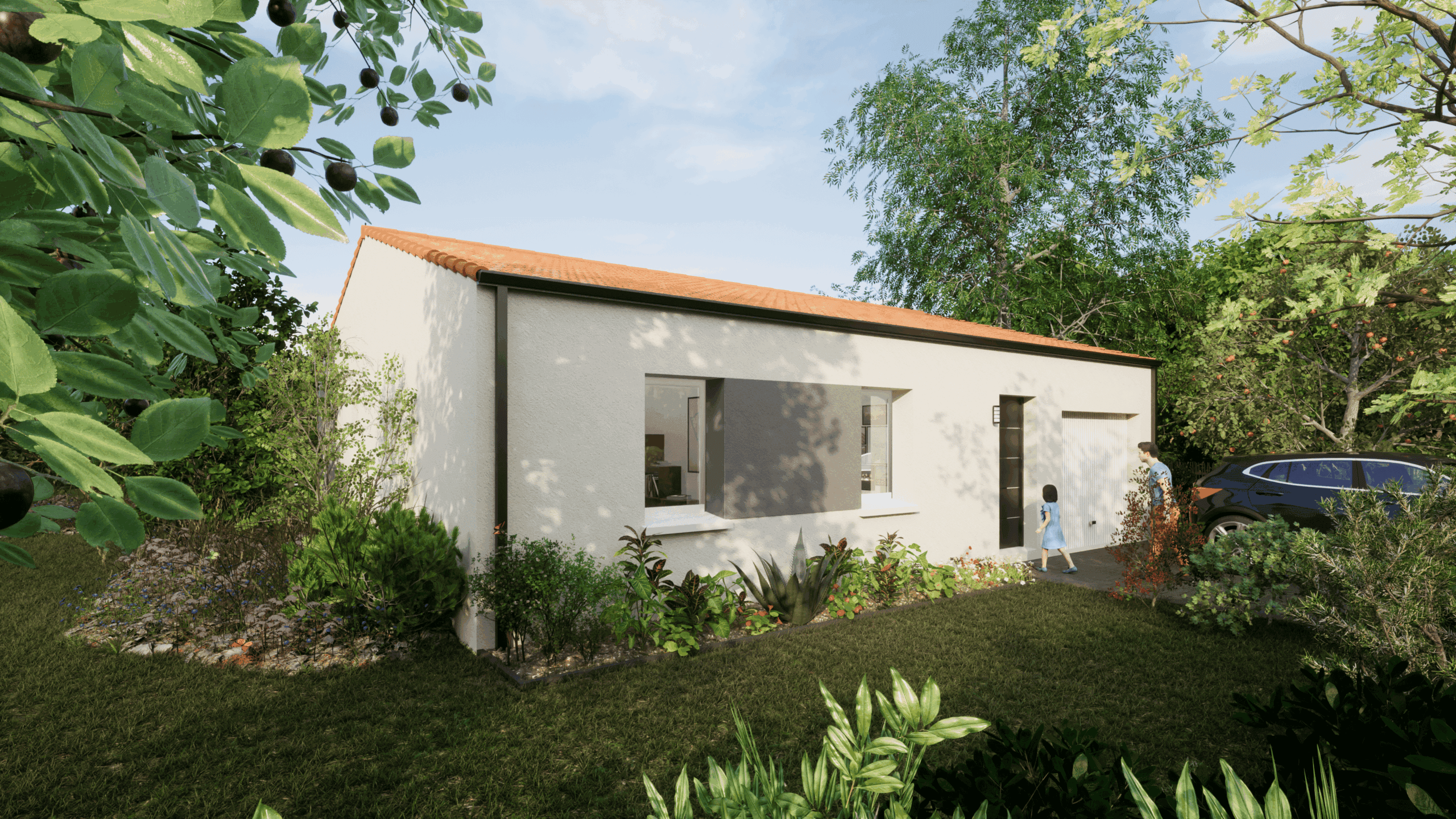 Coût de construction indicatif d’un projet de maison individuelle soumis au contrat protecteur du Code de la construction et de l’habitation (garanties financières et techniques du constructeur incluses). Voir détails en agence. Visuels non-contractuels. Prix à ajuster après visite terrain et selon vos choix définitifs. Hors droits de mutation, taxes locales, frais de raccordement. Terrain sélectionné auprès de partenaires fonciers pour la construction d’une maison neuve par ALLIANCE CONSTRUCTION (non mandatée pour réaliser la vente du terrain), sous réserve de disponibilité.