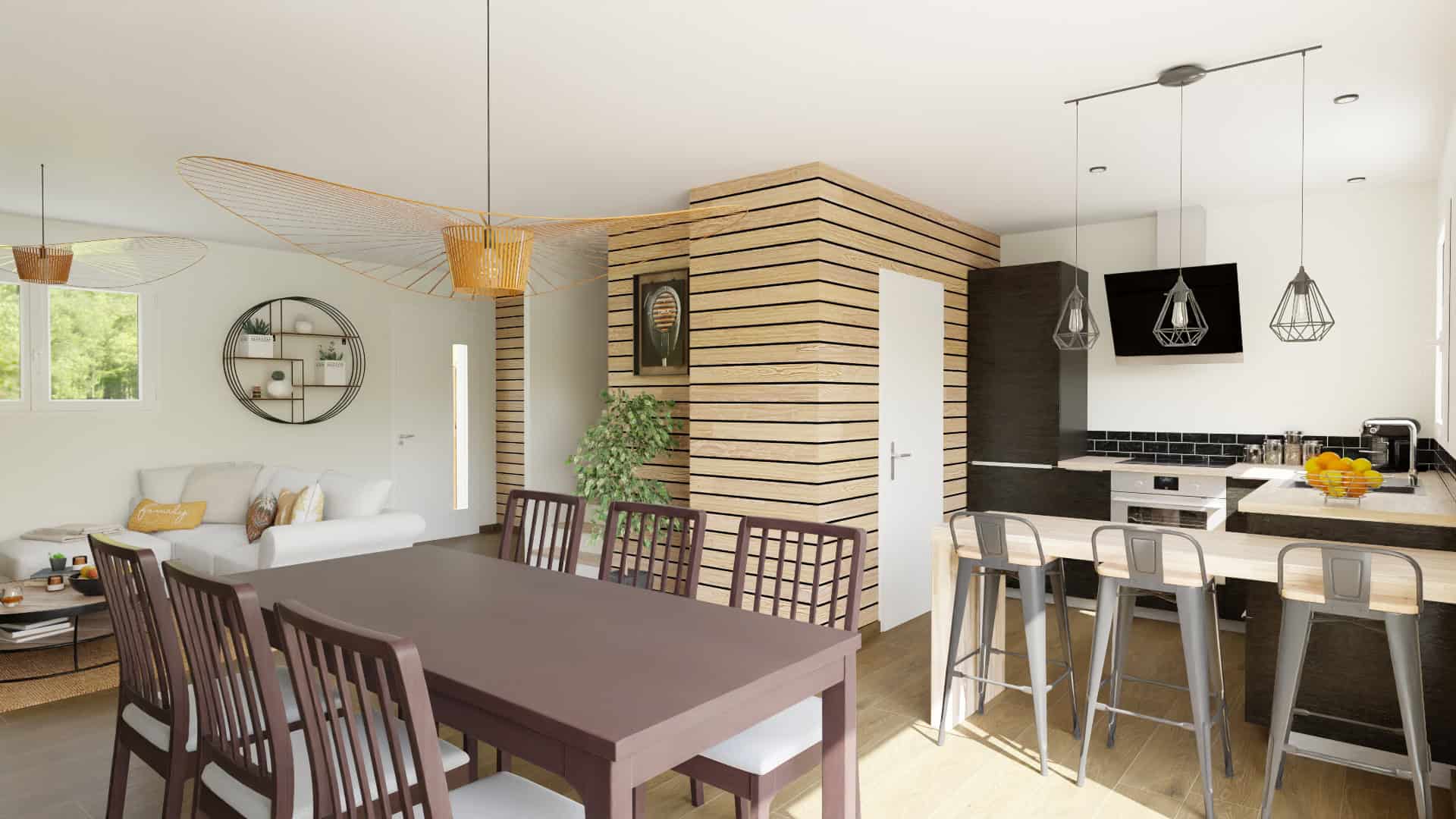 Coût de construction indicatif d’un projet de maison individuelle soumis au contrat protecteur du Code de la construction et de l’habitation (garanties financières et techniques du constructeur incluses). Voir détails en agence. Visuels non-contractuels. Prix à ajuster après visite terrain et selon vos choix définitifs. Hors droits de mutation, taxes locales, frais de raccordement. Terrain sélectionné auprès de partenaires fonciers pour la construction d’une maison neuve par ALLIANCE CONSTRUCTION (non mandatée pour réaliser la vente du terrain), sous réserve de disponibilité.