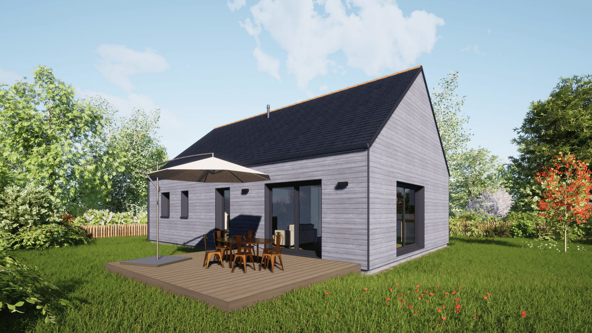Saffré, cette maison en ossature bois aux matériaux biosourcés bénéficie d’une belle luminosité sur un terrain entièrement viabilisé de 303m².