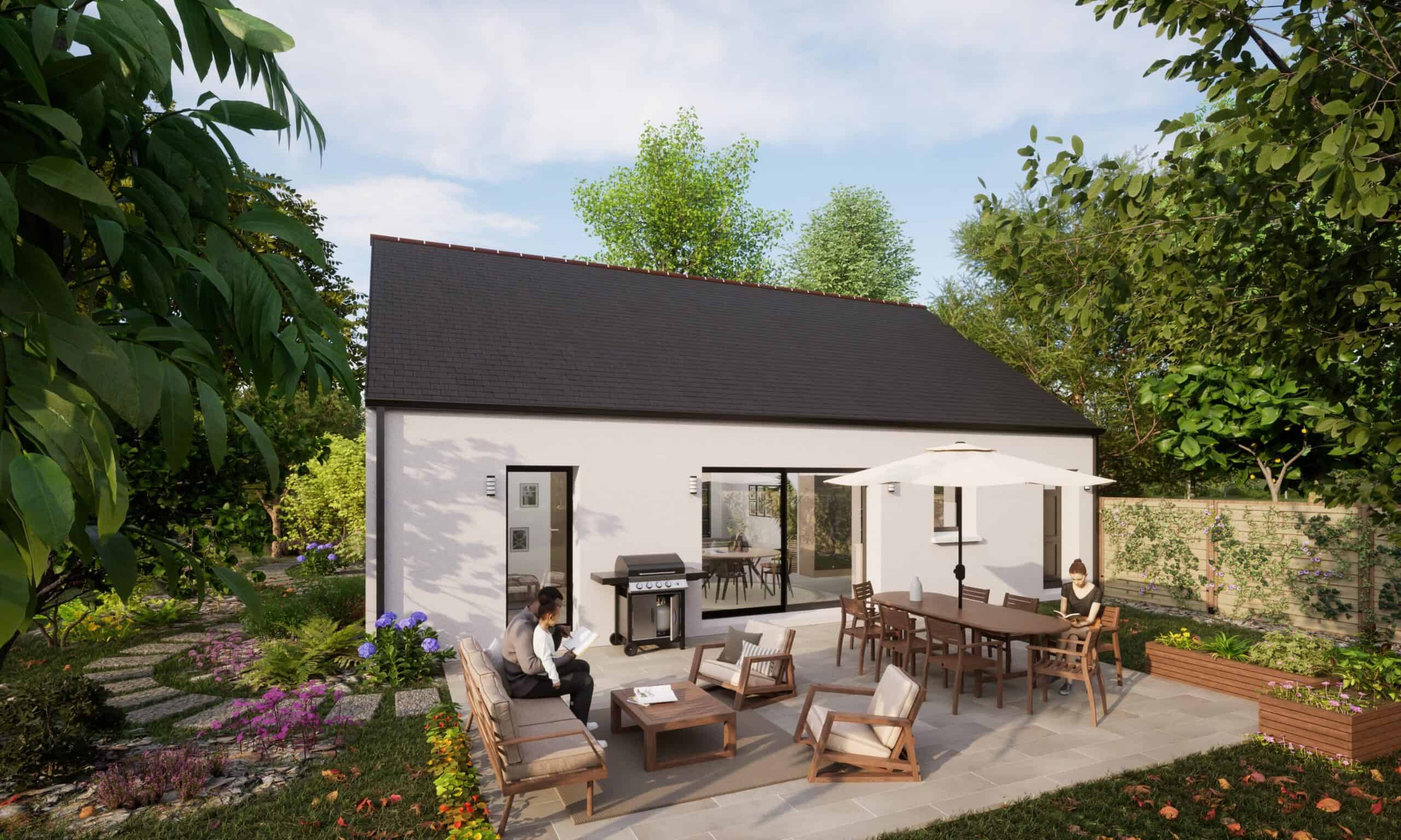 Coût de construction indicatif d’un projet de maison individuelle soumis au contrat protecteur du Code de la construction et de l’habitation (garanties financières et techniques du constructeur incluses). Voir détails en agence. Visuels non-contractuels. Prix à ajuster après visite terrain et selon vos choix définitifs. Hors droits de mutation, taxes locales, frais de raccordement. Terrain sélectionné auprès de partenaires fonciers pour la construction d’une maison neuve par ALLIANCE CONSTRUCTION (non mandatée pour réaliser la vente du terrain), sous réserve de disponibilité.