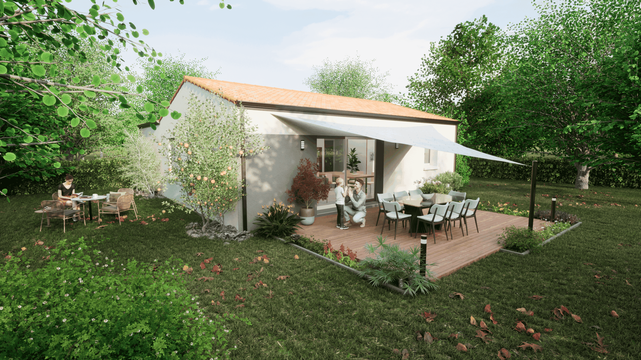 Coût de construction indicatif d’un projet de maison individuelle soumis au contrat protecteur du Code de la construction et de l’habitation (garanties financières et techniques du constructeur incluses). Voir détails en agence. Visuels non-contractuels. Prix à ajuster après visite terrain et selon vos choix définitifs. Hors droits de mutation, taxes locales, frais de raccordement. Terrain sélectionné auprès de partenaires fonciers pour la construction d’une maison neuve par ALLIANCE CONSTRUCTION (non mandatée pour réaliser la vente du terrain), sous réserve de disponibilité.