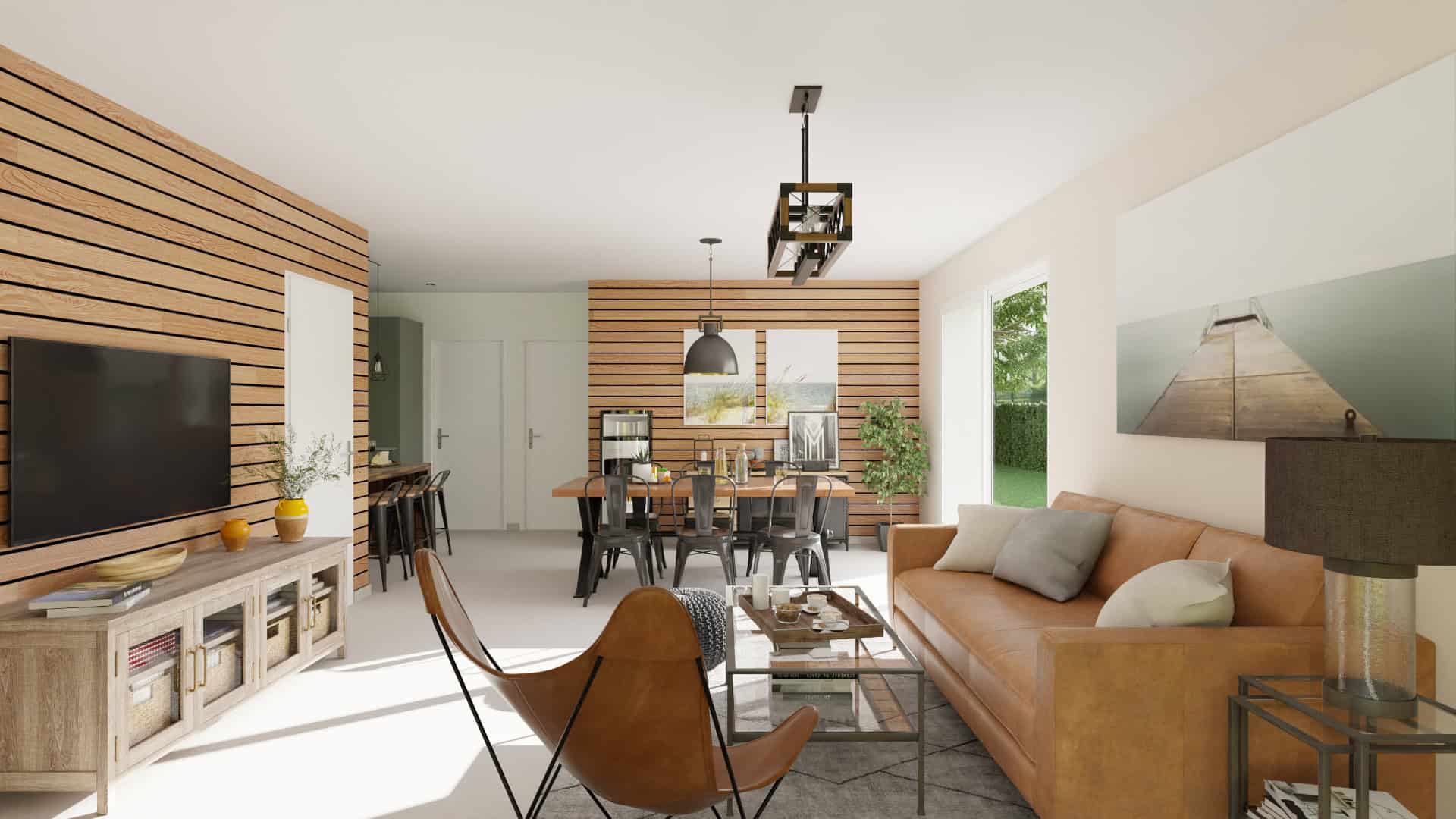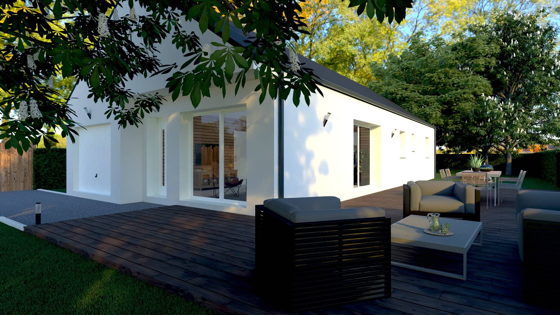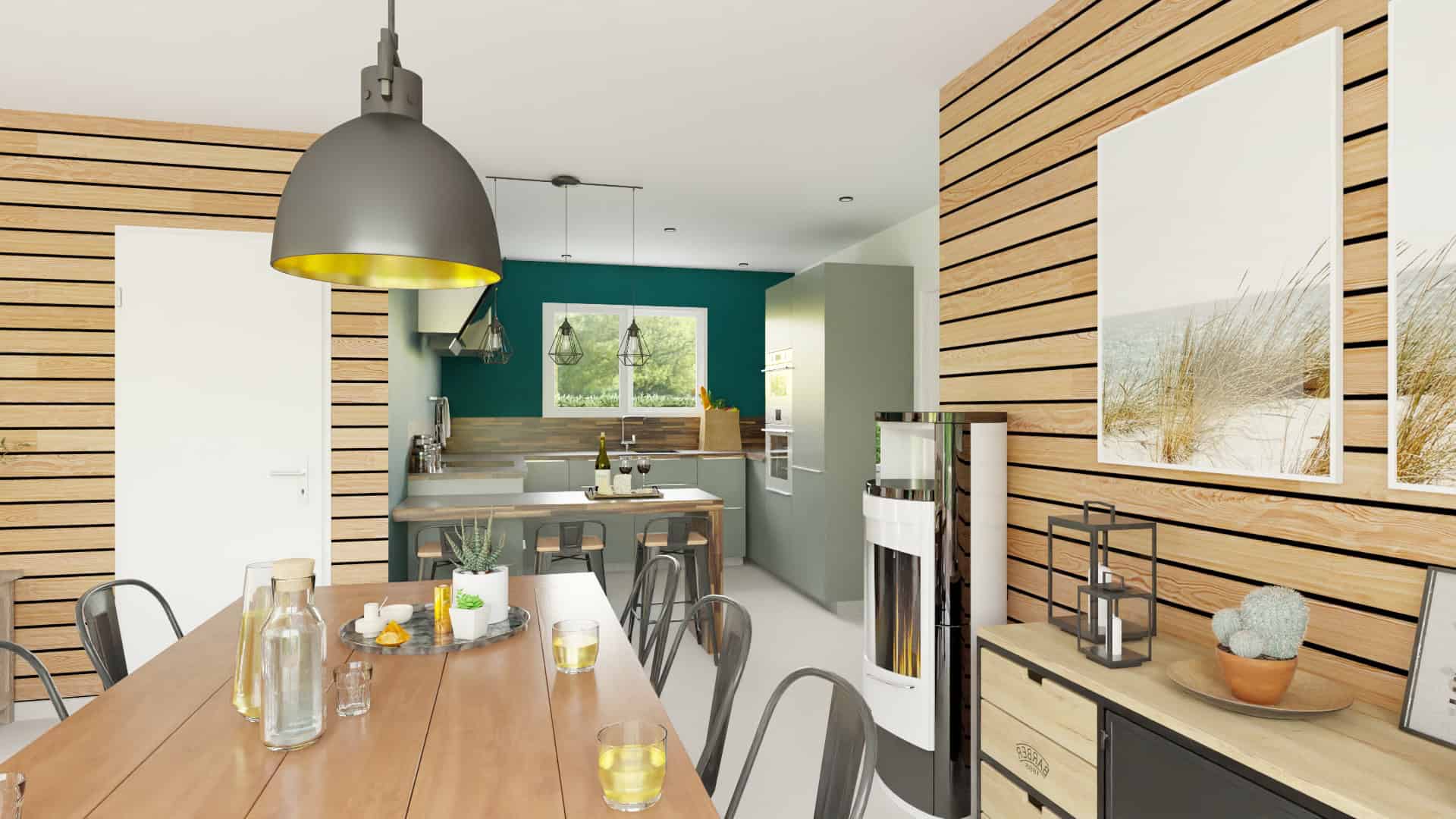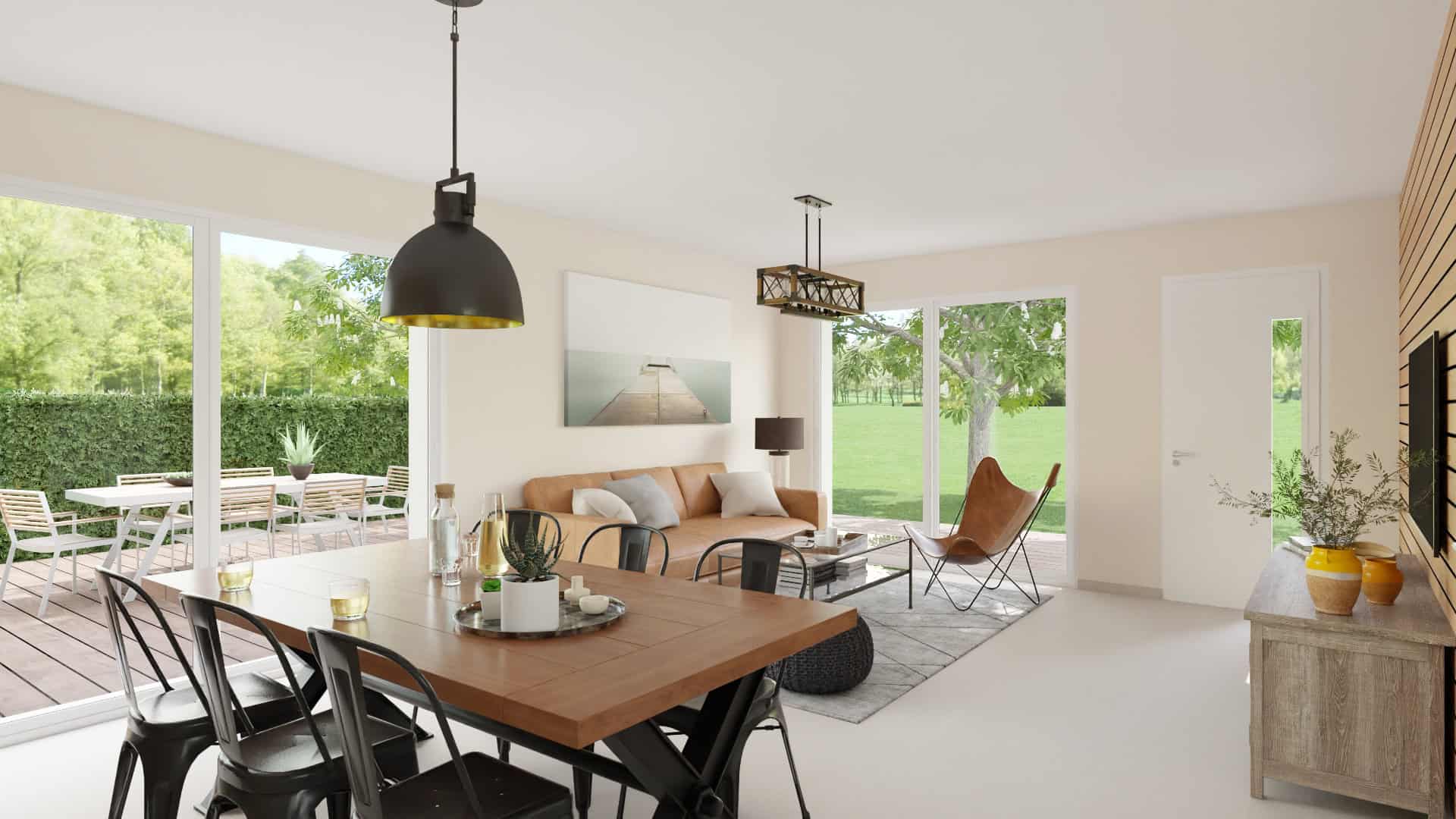 Conçue pour s’implanter sur un terrain à façade étroite, cette maison de plain-pied de 92 m² comprend :