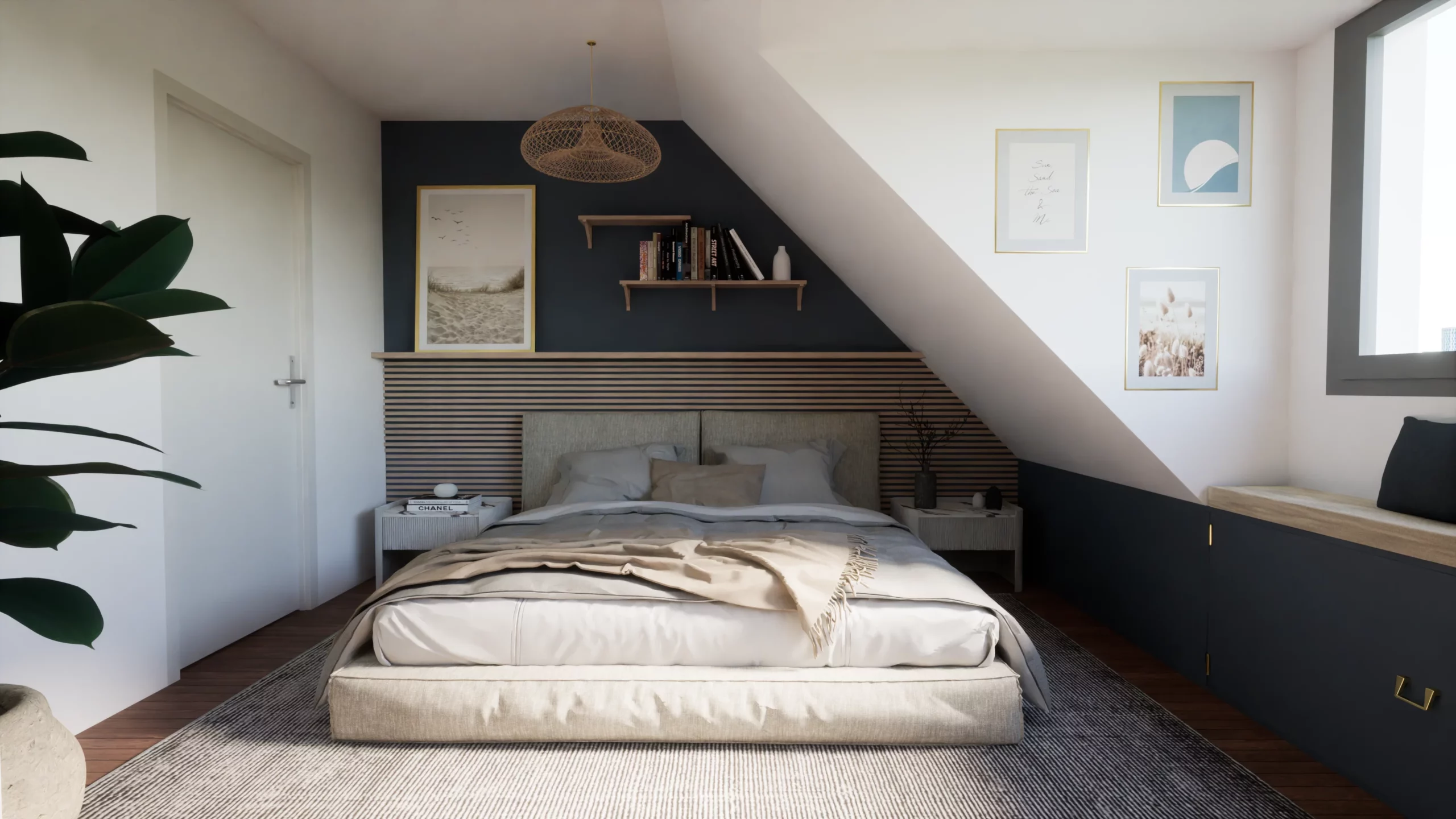 Il dessert une suite parentale accompagnée d’un dressing et d’une salle d’eau.