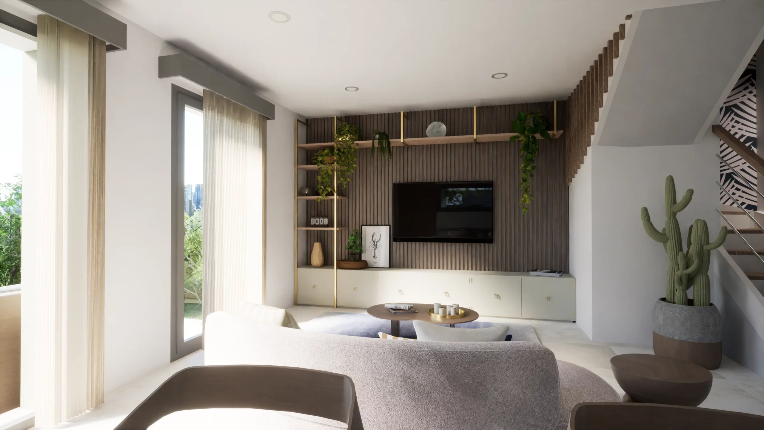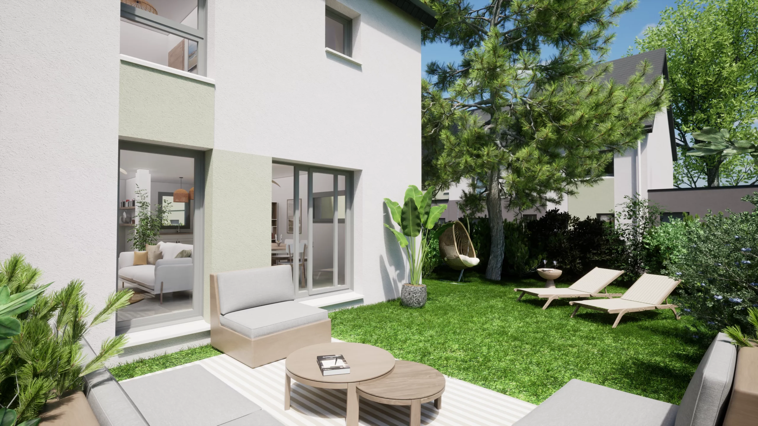 Les jardins sont accessibles depuis le salon/séjour. Ils sont entièrement clos par des grillages et des haies aux feuilles persistantes pour plus d’intimité. Ces maisons avec leur architecture moderne, aux lignes claires et aux finitions élégantes s’insèrent parfaitement dans ce paysage verdoyant.