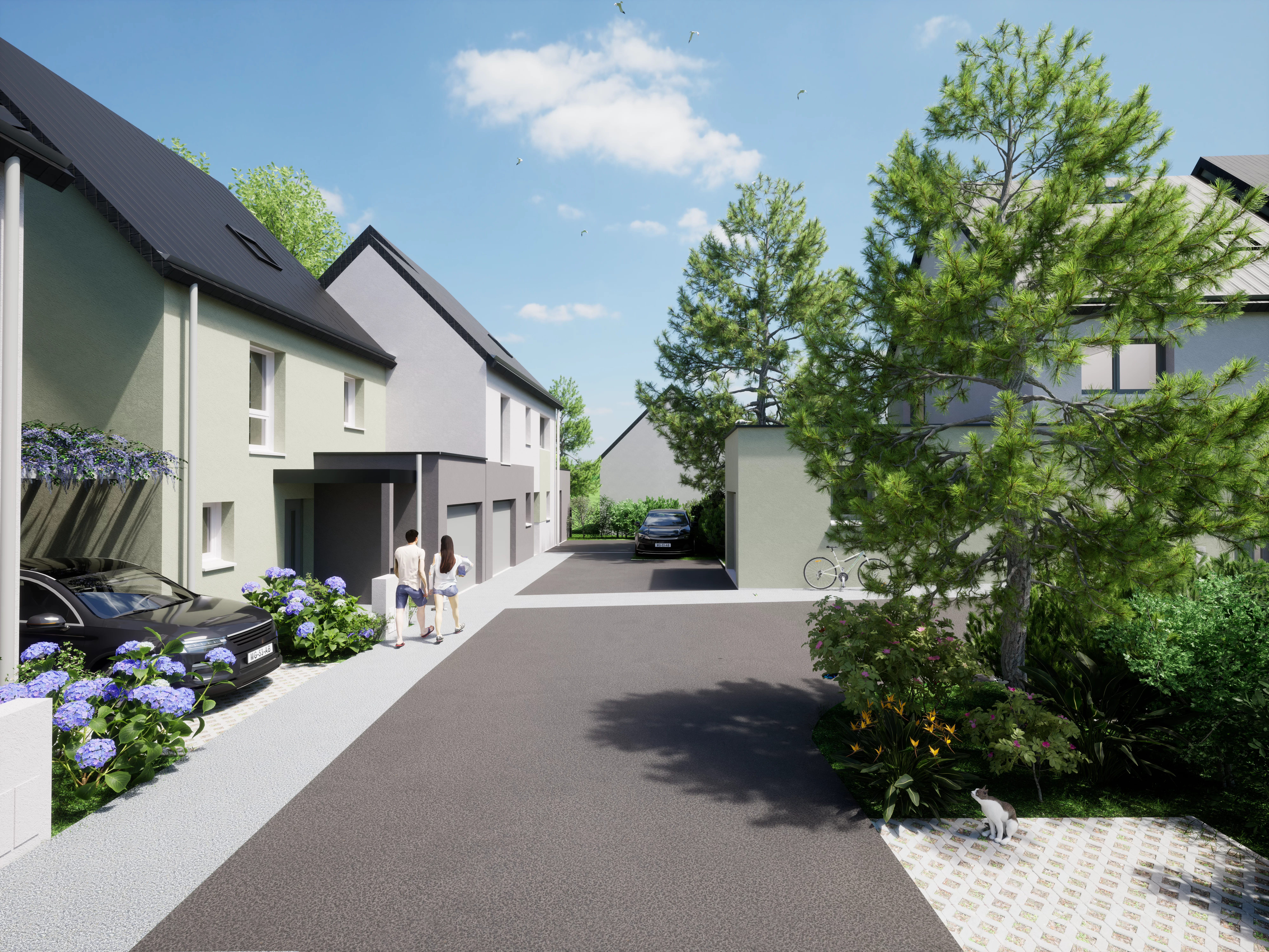 Dans un quartier résidentiel, programme de dix maisons neuves : le juste équilibre entre le tout à proximité et le calme d’un environnement verdoyant.