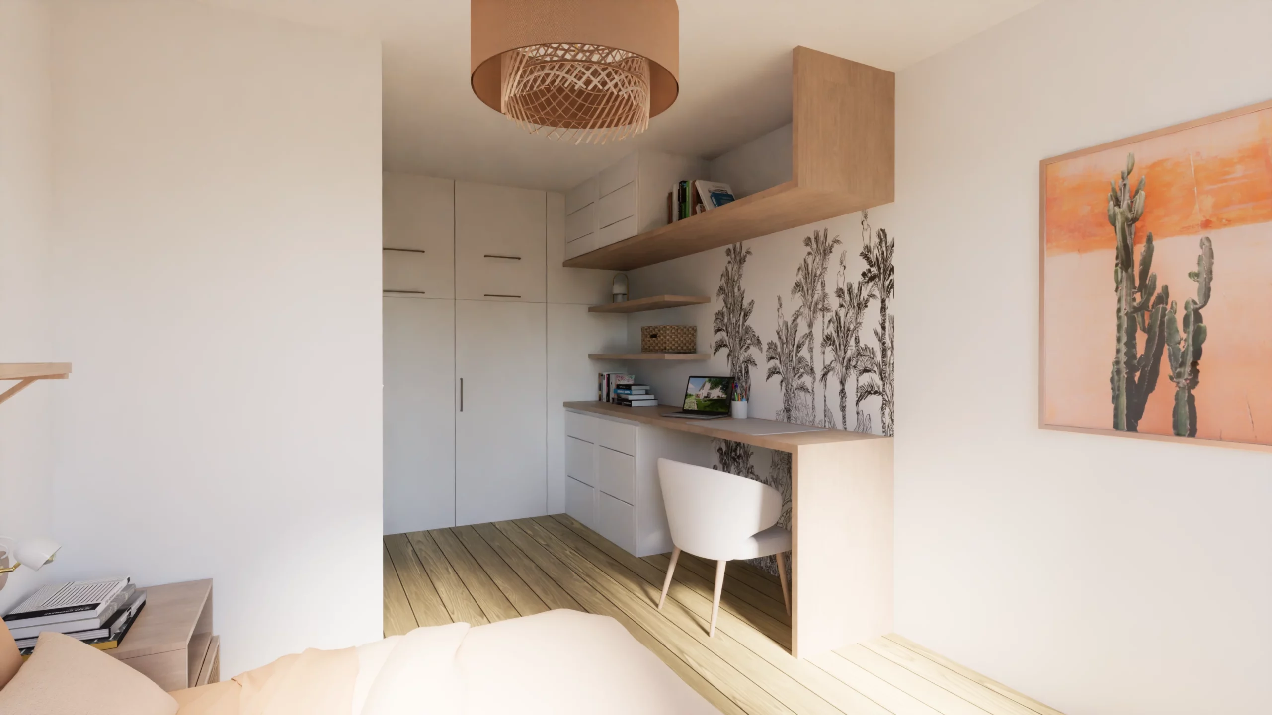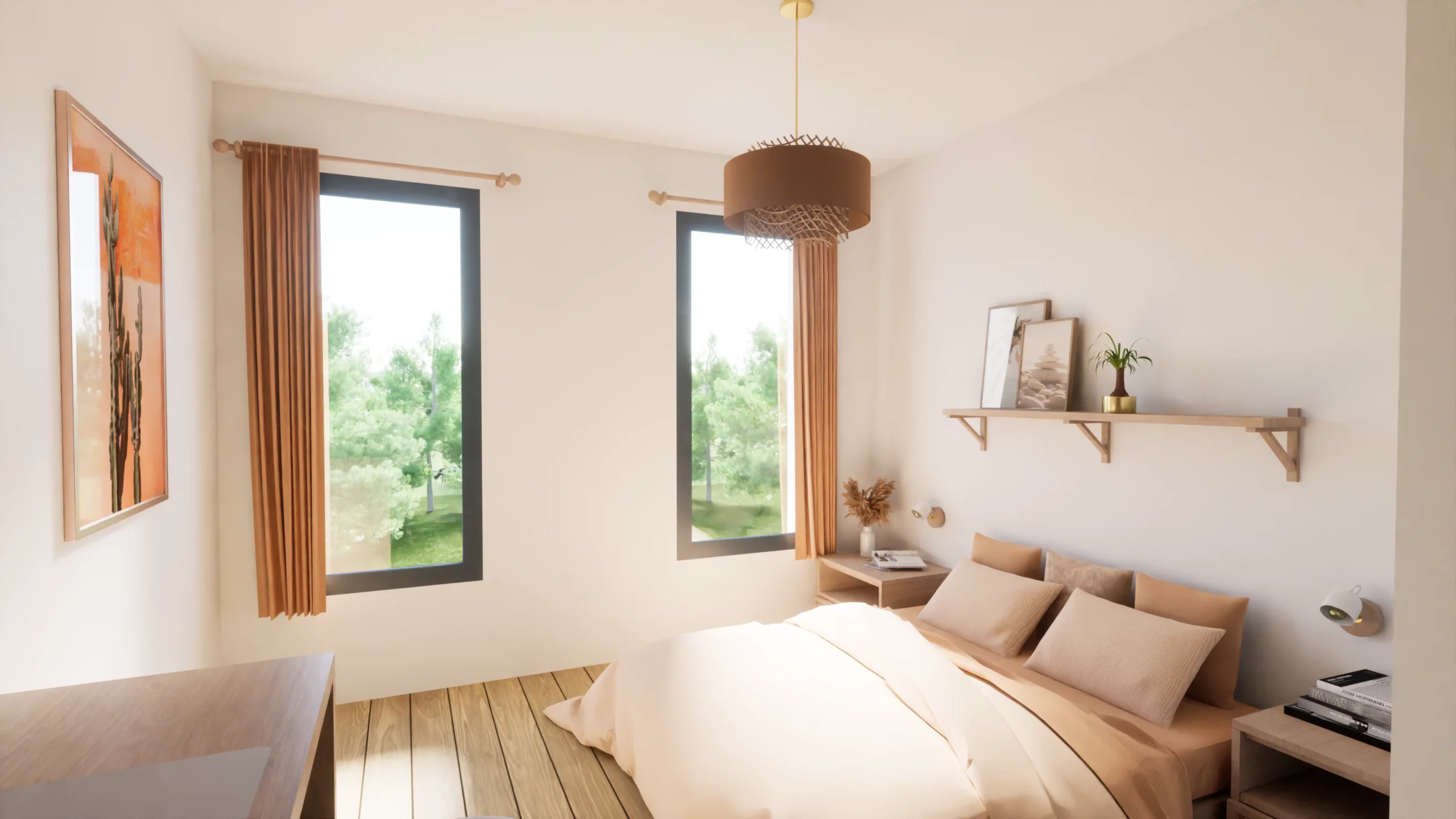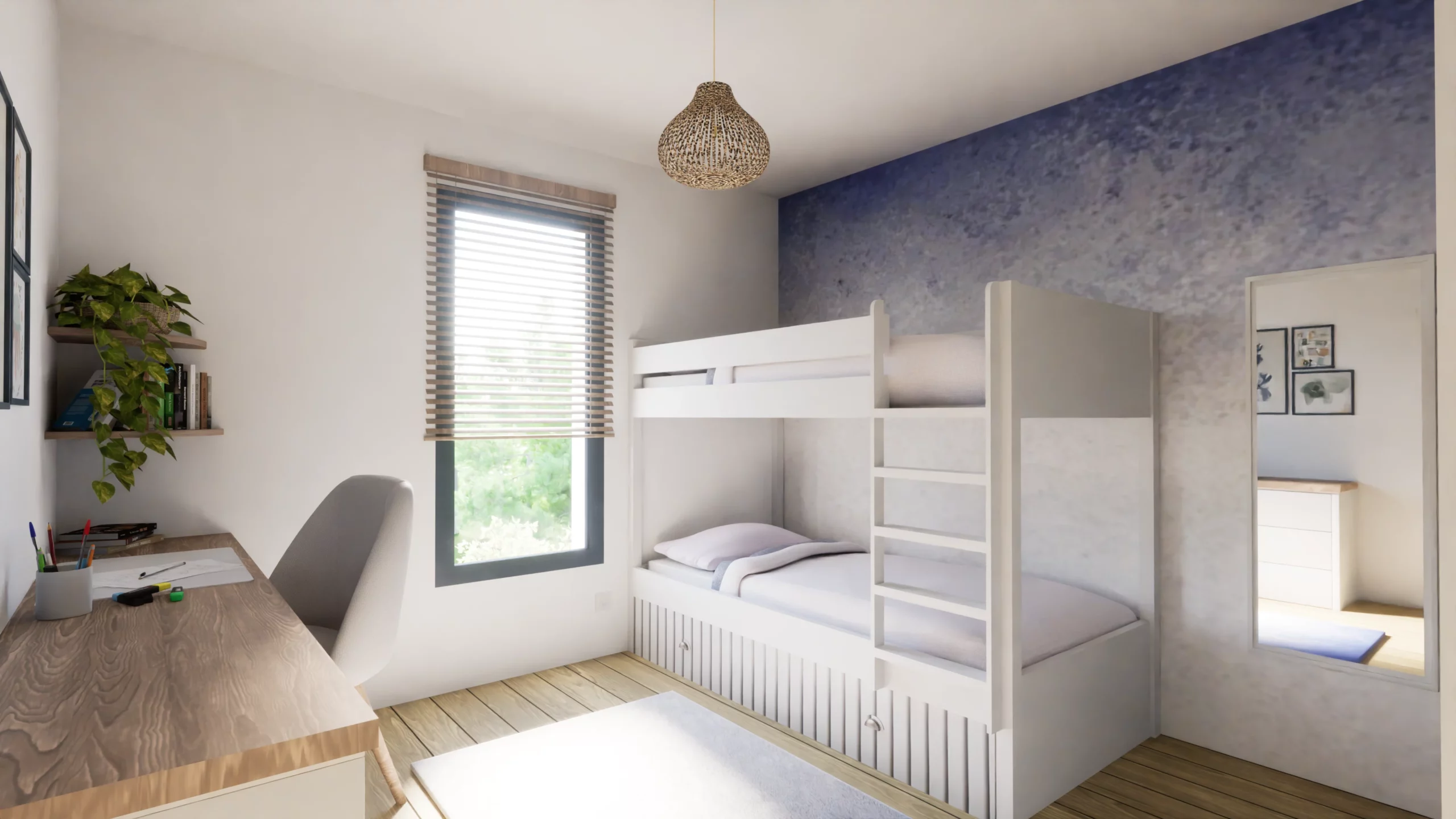 Profitez d’un vaste salon/séjour avec une cuisine ouverte à personnaliser. Les ouvertures de cet espace de vie vous laissent bénéficier de la lumière naturelle et d’une terrasse spacieuse. Une chambre de plain-pied vient parfaire le rez-de-chaussée.