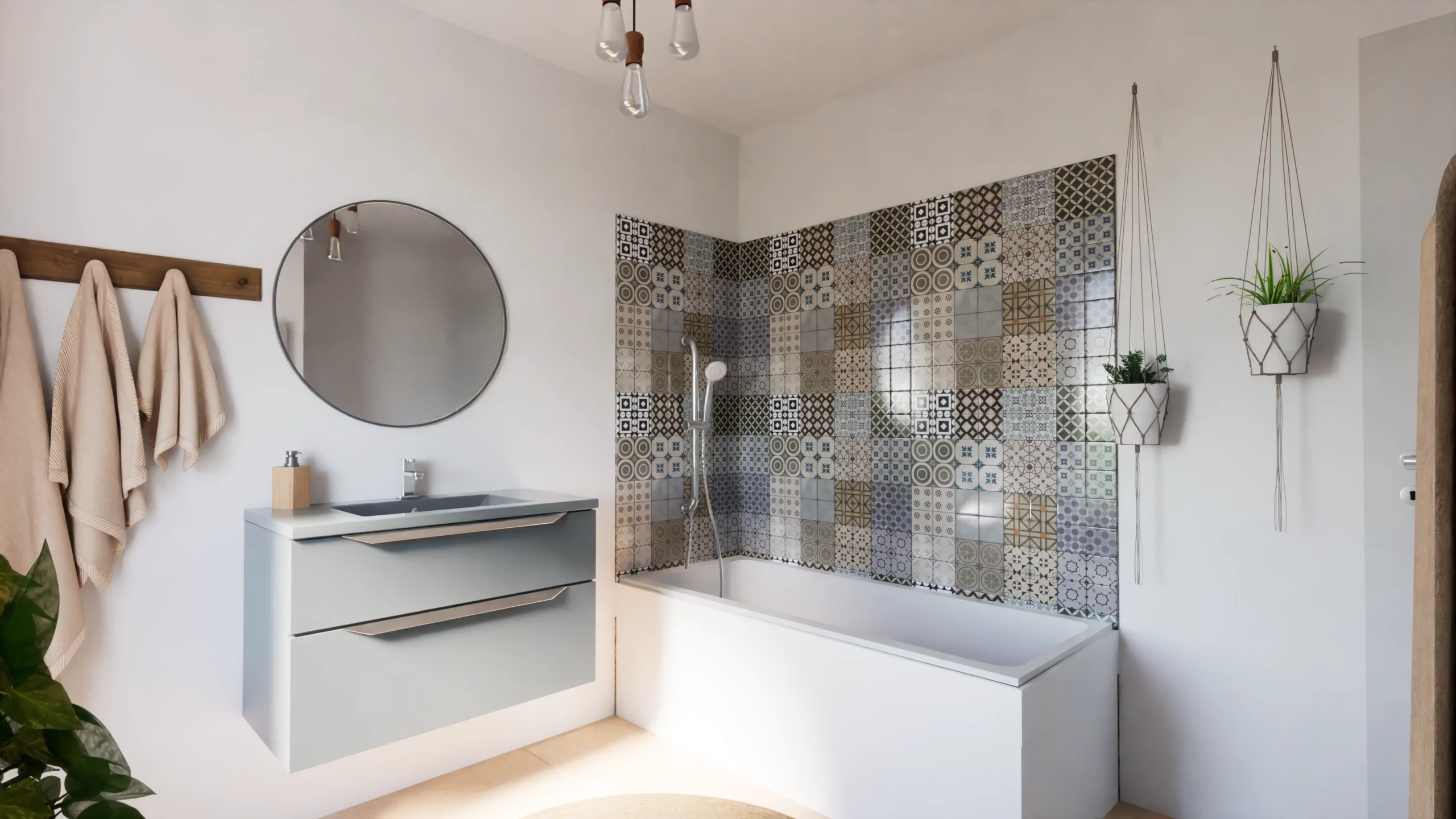 L’escalier donne sur un pallier desservant 2 grandes chambres agrémentées d’une salle de bain avec baignoire, propice à la détente.