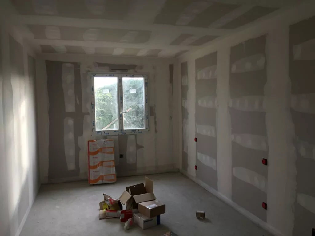 Après rendez-vous préalables, le contrat est signé et le chantier démarre, en janvier 2018. Le chantier est le suivant : transformation d’une ancienne chambre en dressing avec accès sur une extension de 25 m² : construction d’une chambre de 16,13 m² et d’une salle de bains de 6,87 m².